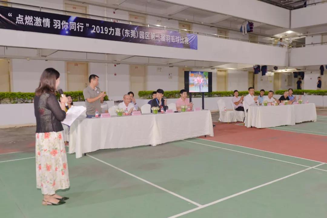 2019年10月11日,力嘉(東莞)園區第一屆羽毛球比賽開幕式在我園羽毛球場隆重舉行,橋頭鎮總工會副主席莫志波,力嘉國際集團副總經理馬楚力,董事長助理、工會主席馬松綿,人事部經理、工會副主席貝宇,園區入駐企業高管以及參賽選手近百人共聚于此。
