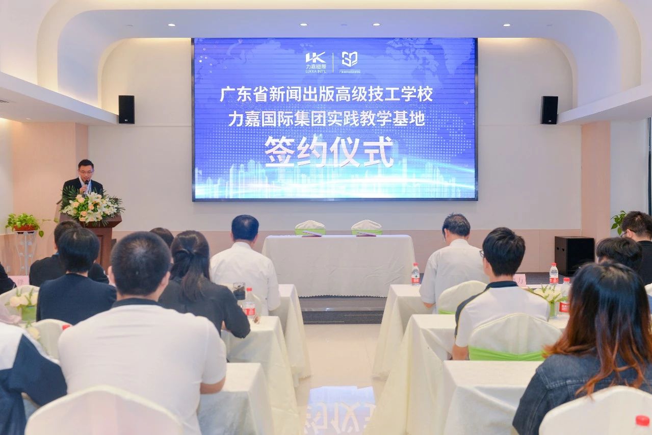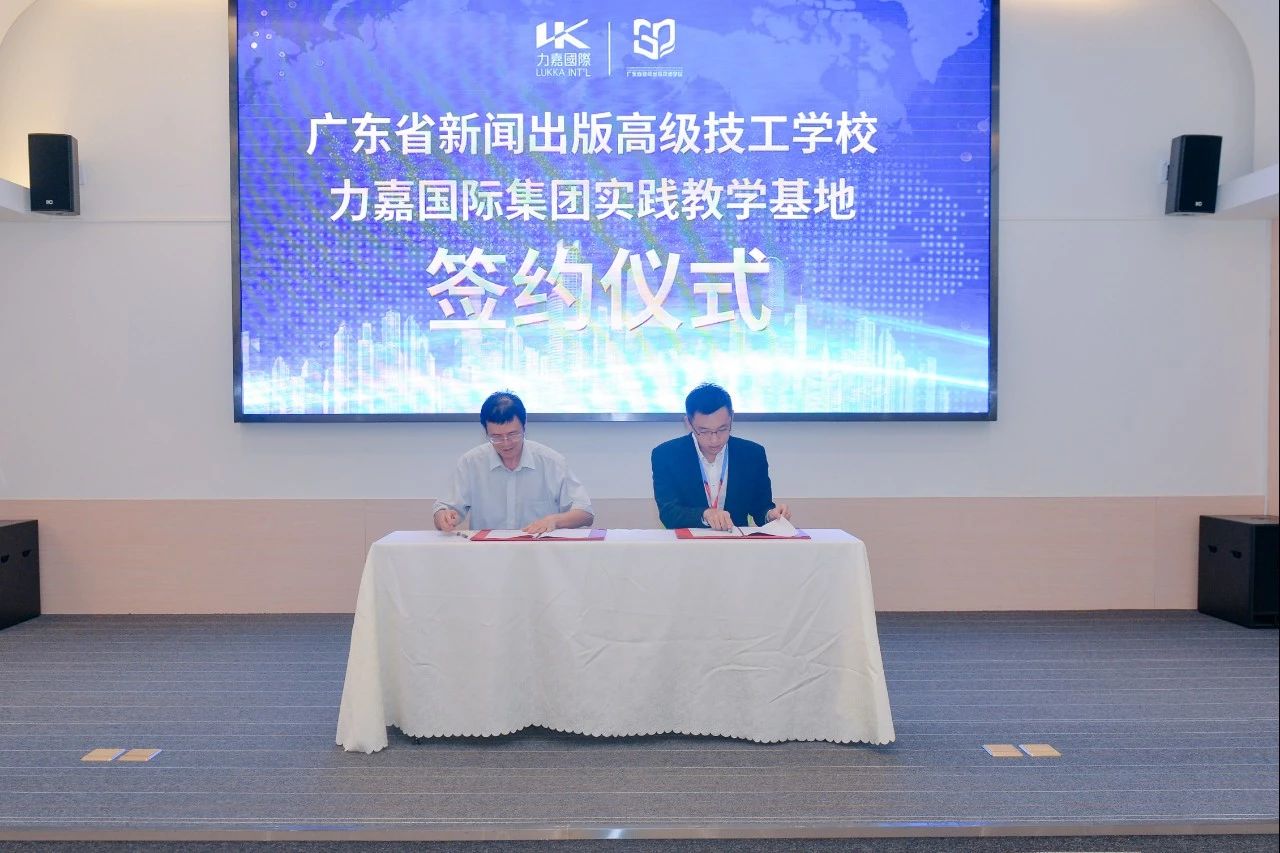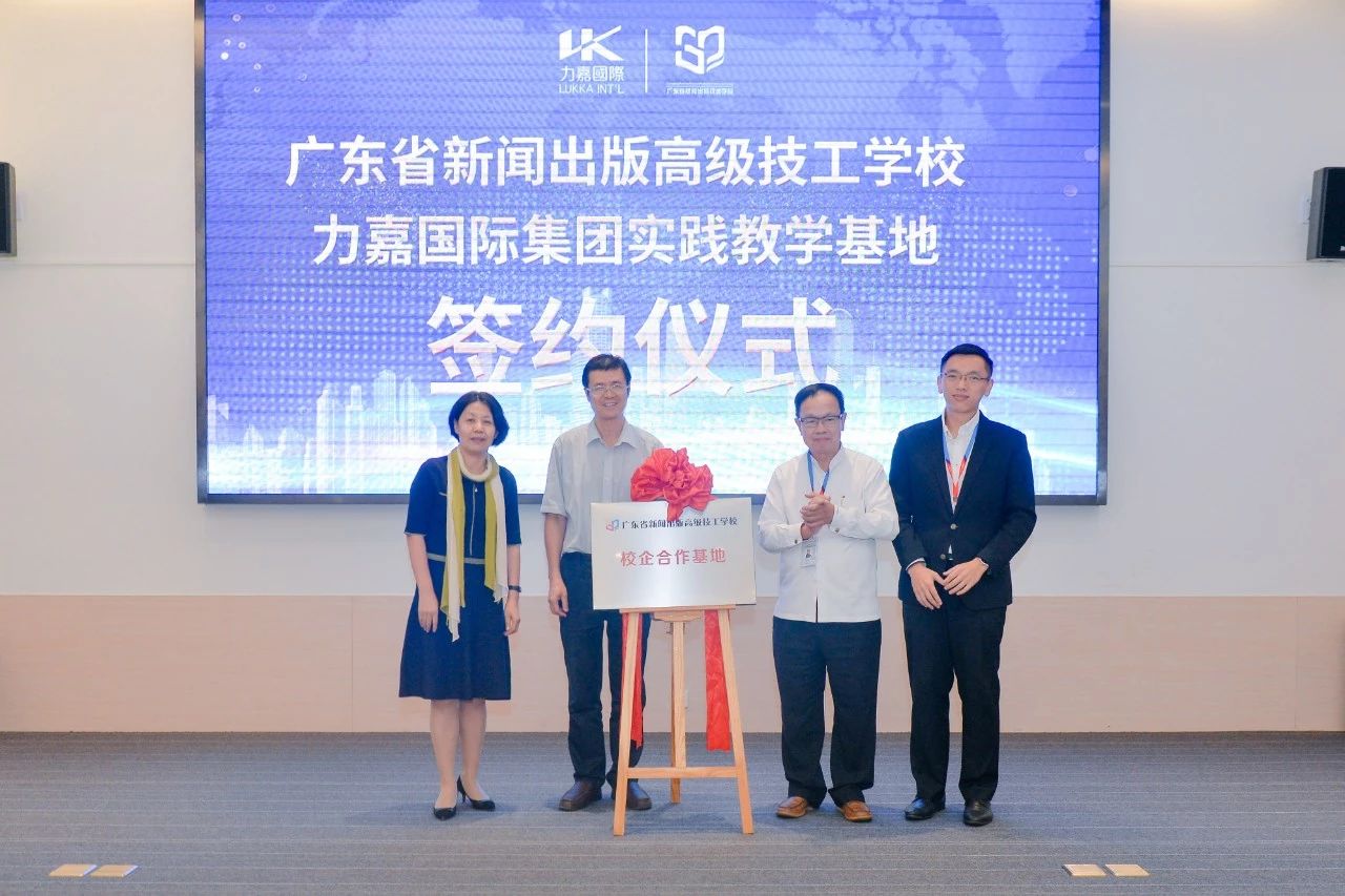 2019年10月18日,力嘉(東莞)園區隆重舉辦力嘉國際集團與廣東省新聞出版高級技工學校實踐教學基地簽約、揭牌儀式,力嘉國際集團董事總經理馬馀雄,副總經理馬楚力,廣東省新聞出版高級技工學校黨委書記、校長傅東偉,廣東省新聞出版高級技工學校副校長翟茹及師生近百人共聚于此,共同見證簽約揭牌儀式。