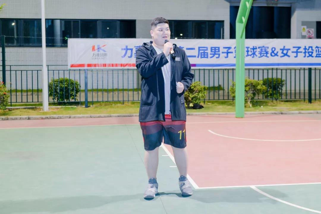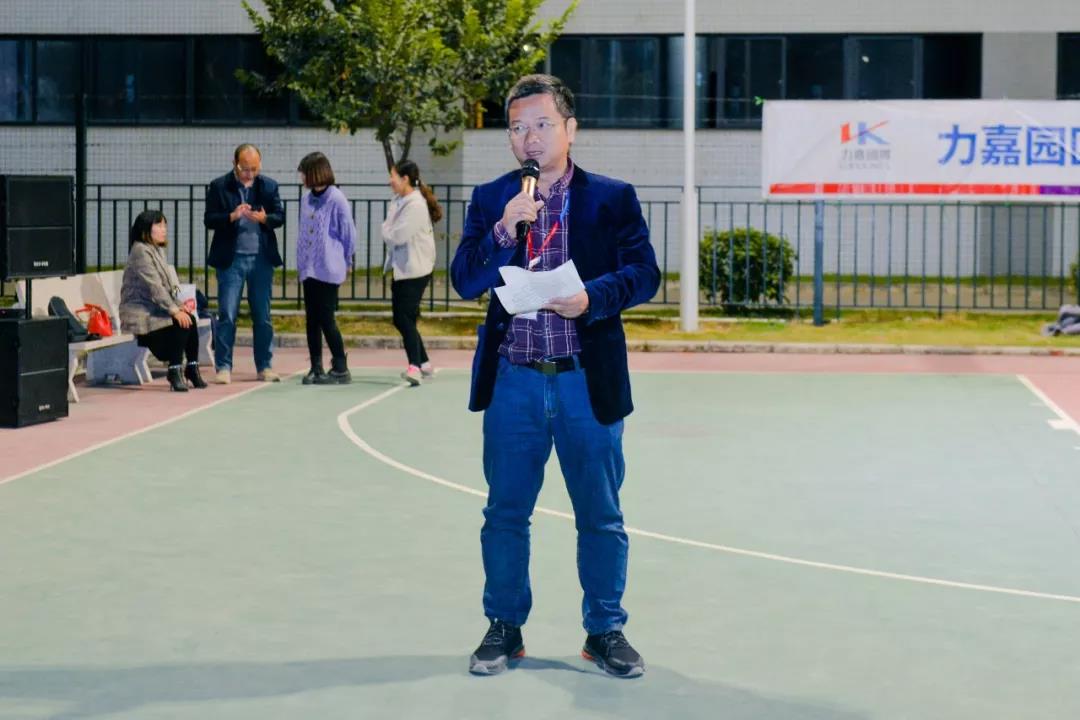 2019年12月2日晚上,力嘉園區第二屆男子籃球賽&女子投籃比賽活動開幕式在我園籃球場隆重舉行,力嘉集團董事長助理、工會主席馬松綿先生;人事部經理、工會副主席貝宇先生;園區入駐企業管理層代表以及參加籃球比賽的員工,近兩百人共聚于此。