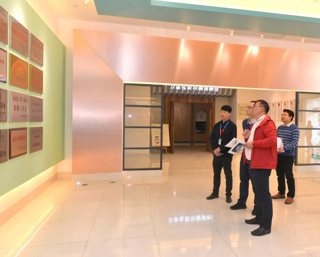 接著,在集團董事長助理馬松綿的陪同下,來訪領導先后對力嘉包裝印刷博物館、力嘉企業館、包裝設計展廳、大灣區3D科創實驗基地、蘋果樹創客空間、嘉湖觀及10萬㎡生產車間進行重點參觀。